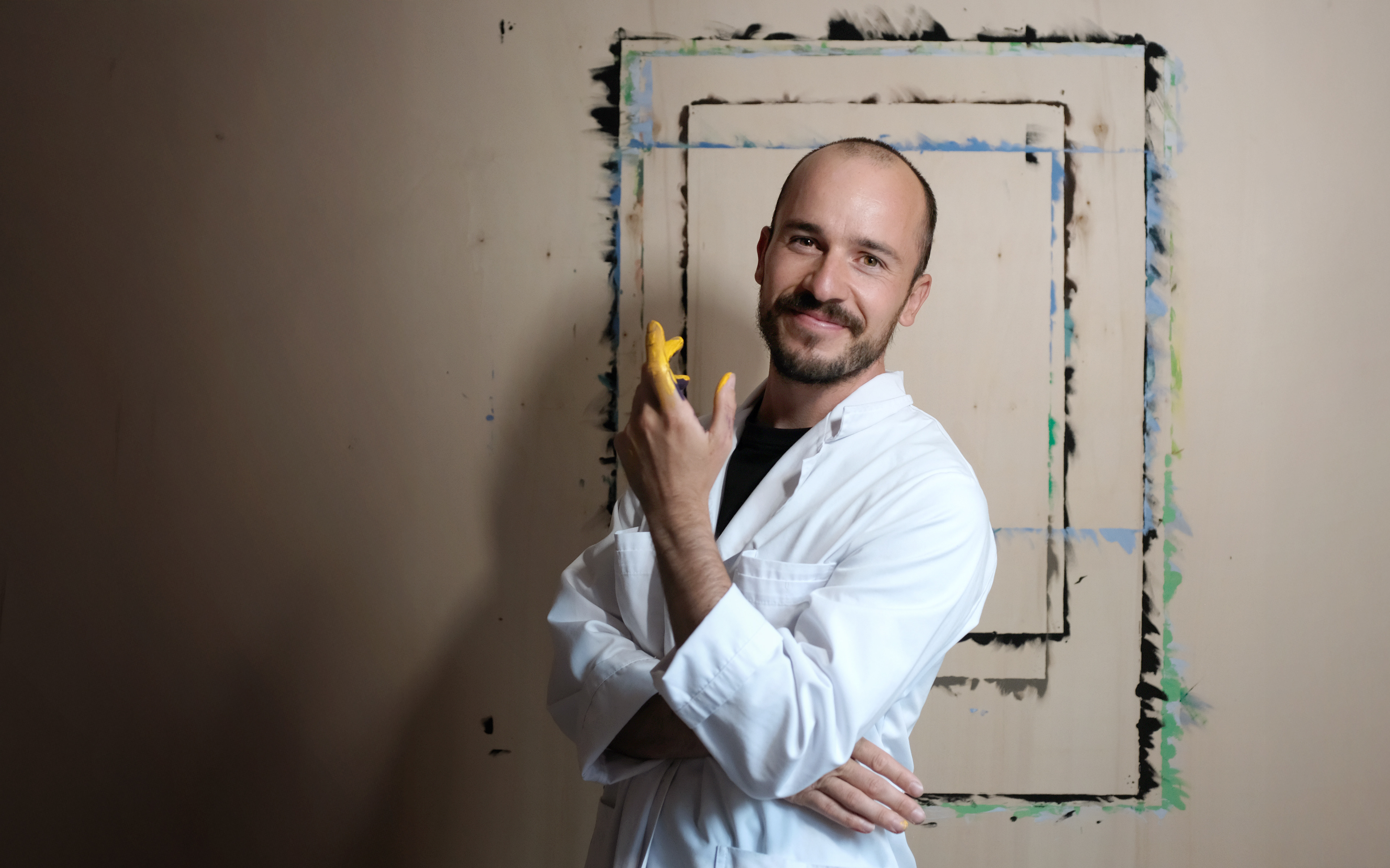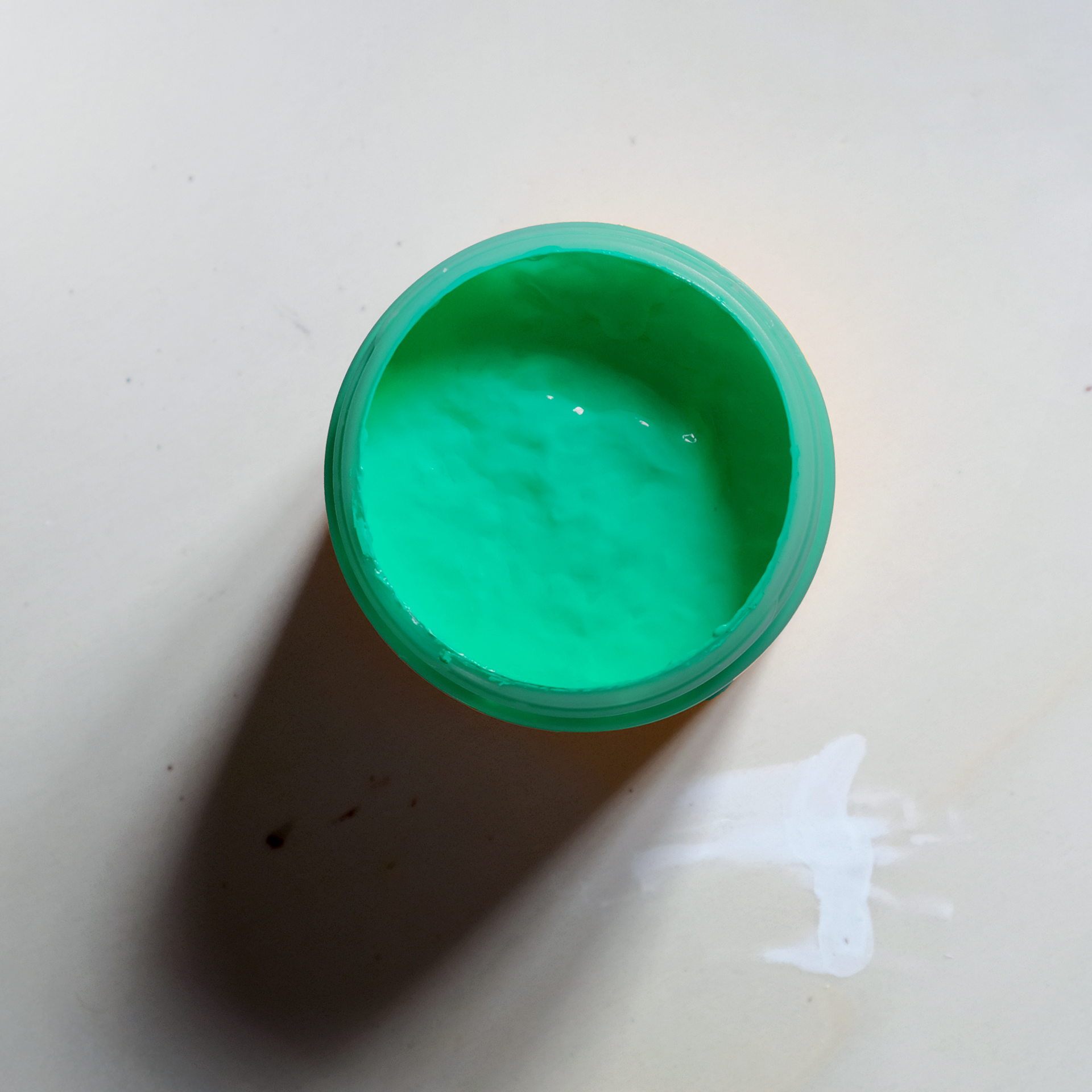 Der Malraum ist für das Malen in einer geschützten und ruhigen Umgebung konzipiert. Darin befindet sich eine Malfläche, welche ausreichend Platz für den grossformatigen Farbauftrag auf Papier bietet. Das Malmaterial besteht aus hochdeckenden, bioaktivierten Künstlerfarben von Lascaux, welche in der Regel von Hand aufgetragen werden.